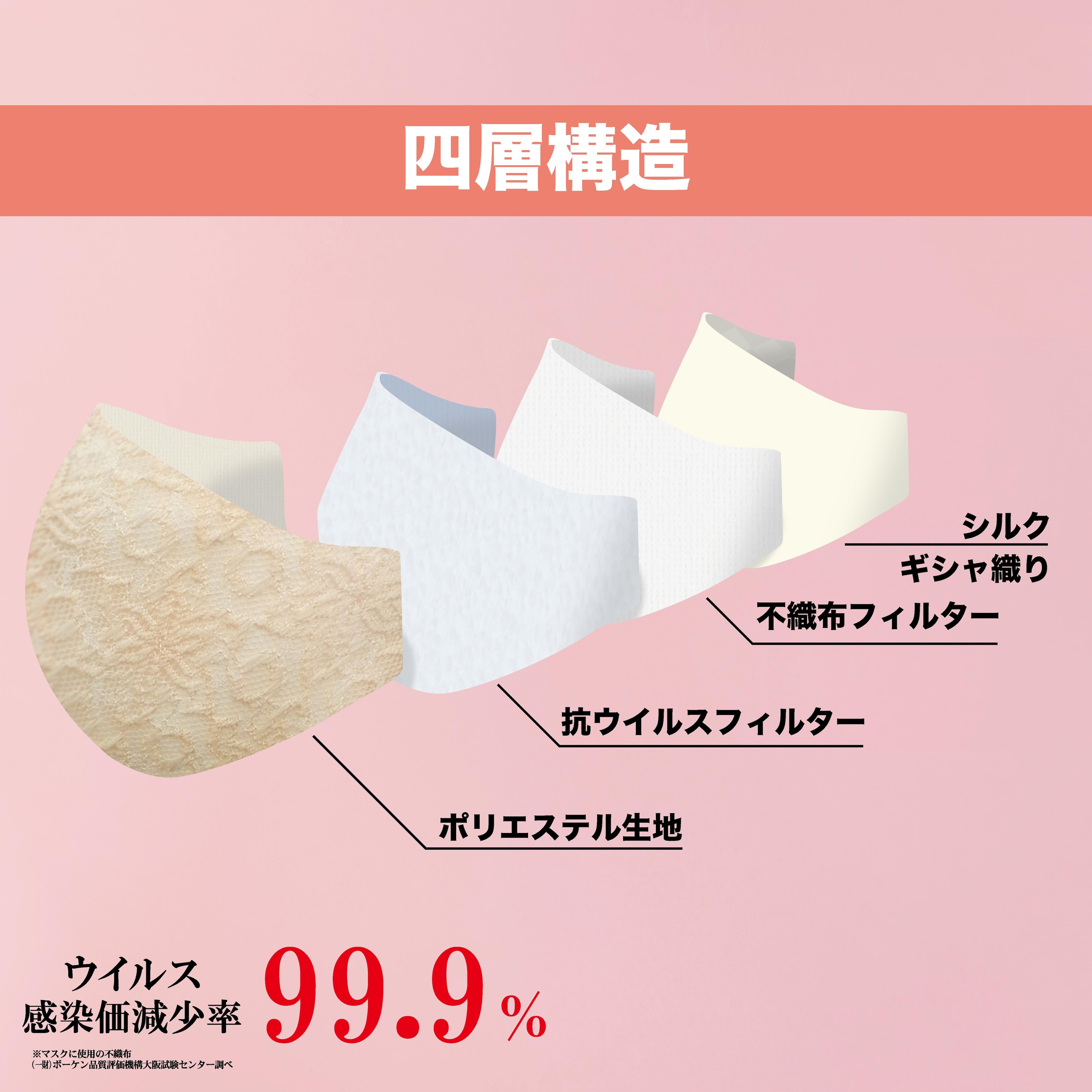 エレガンスレースマスクは、落ち着いた色合いと繊細なレースのデザインが特徴です。立体型、を採用し、顔全体をしっかりとカバーしながらもフィット感を大切にした作りとなっています。日常使いはもちろん、特別な場面でも上品な印象を与えます。