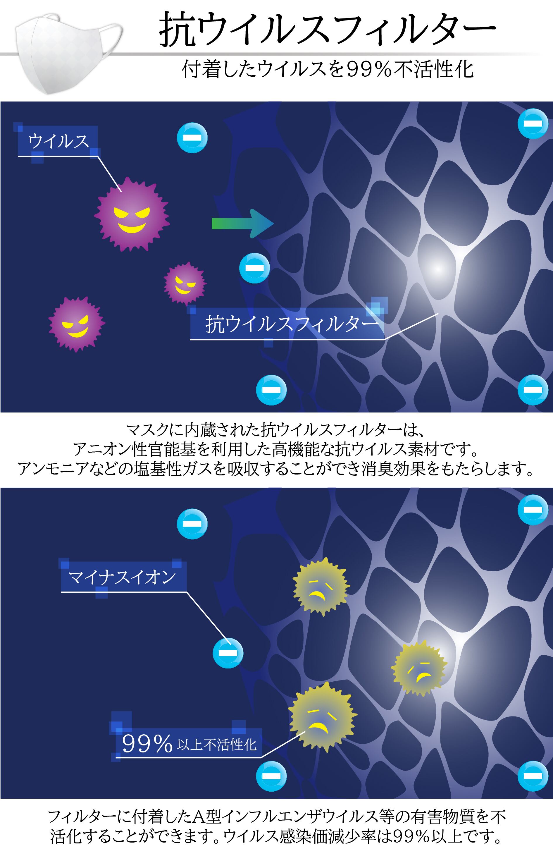 ナノマスクはN95マスクと同等のウイルス捕集効率を誇るナノファィバーフィルターを使用。
