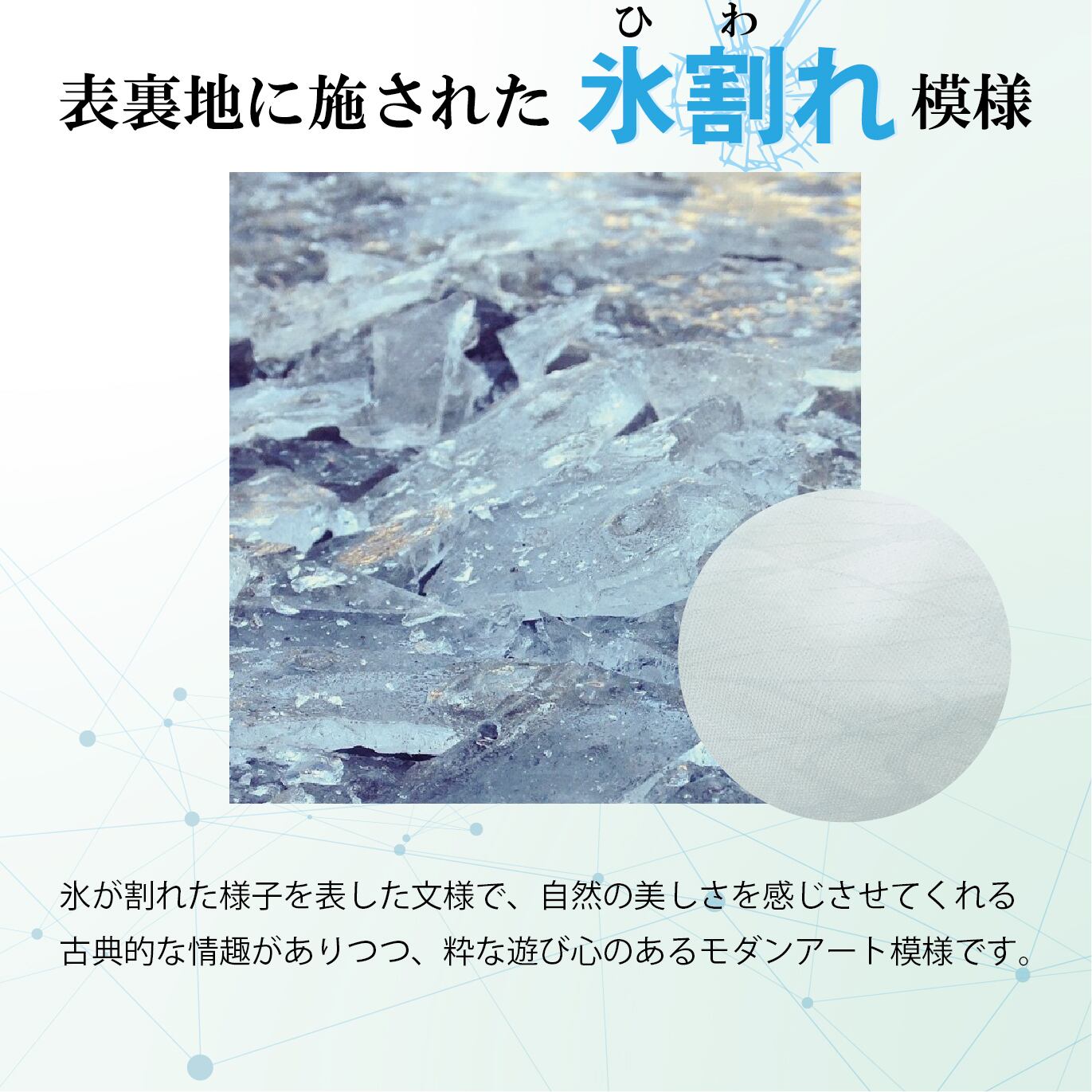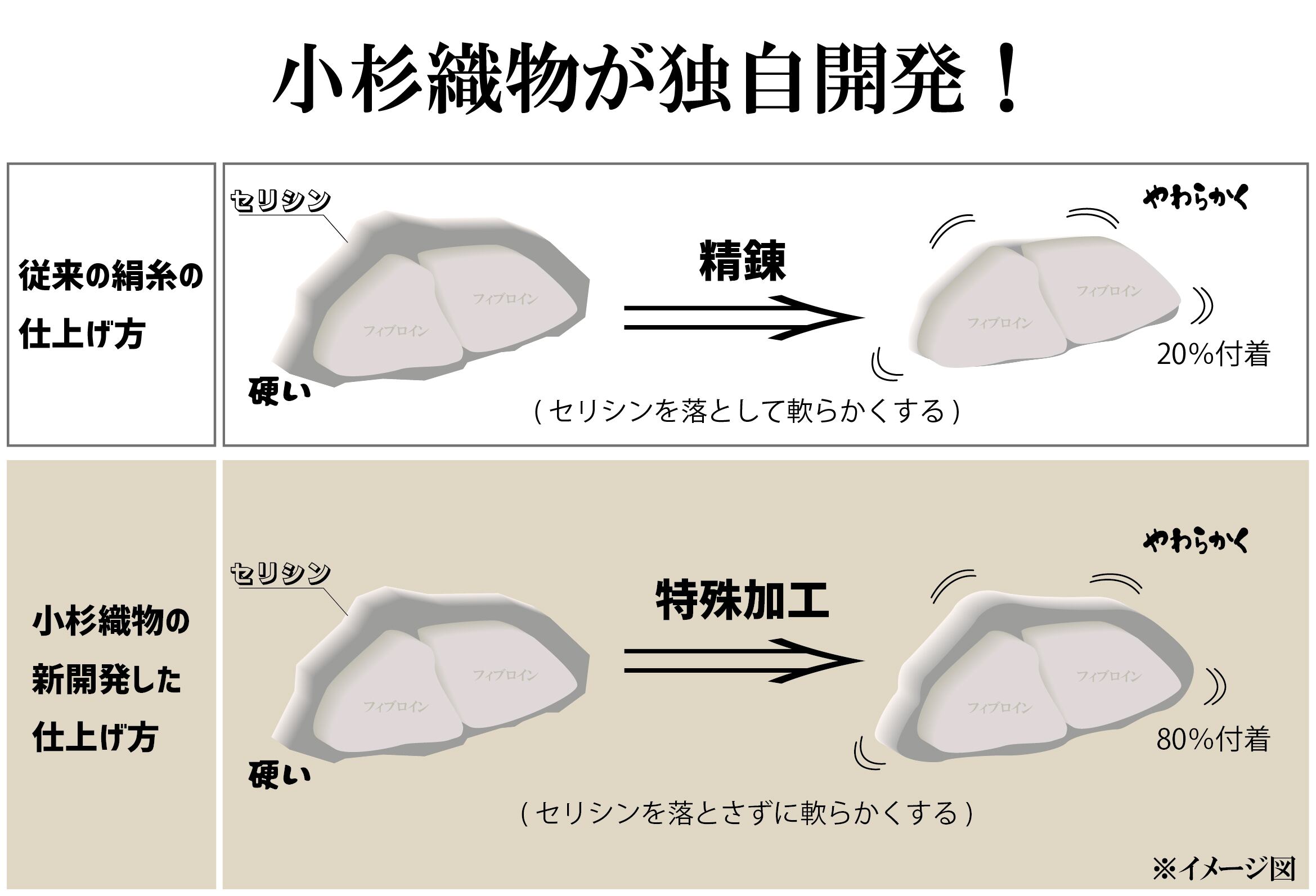 また、裏地は打つ込みを加え肌触りのよさと肌へのうるおいを強化。絹のセリシンが従来品より多く含み肌への保湿と共に優しい肌ざわりとなりました。