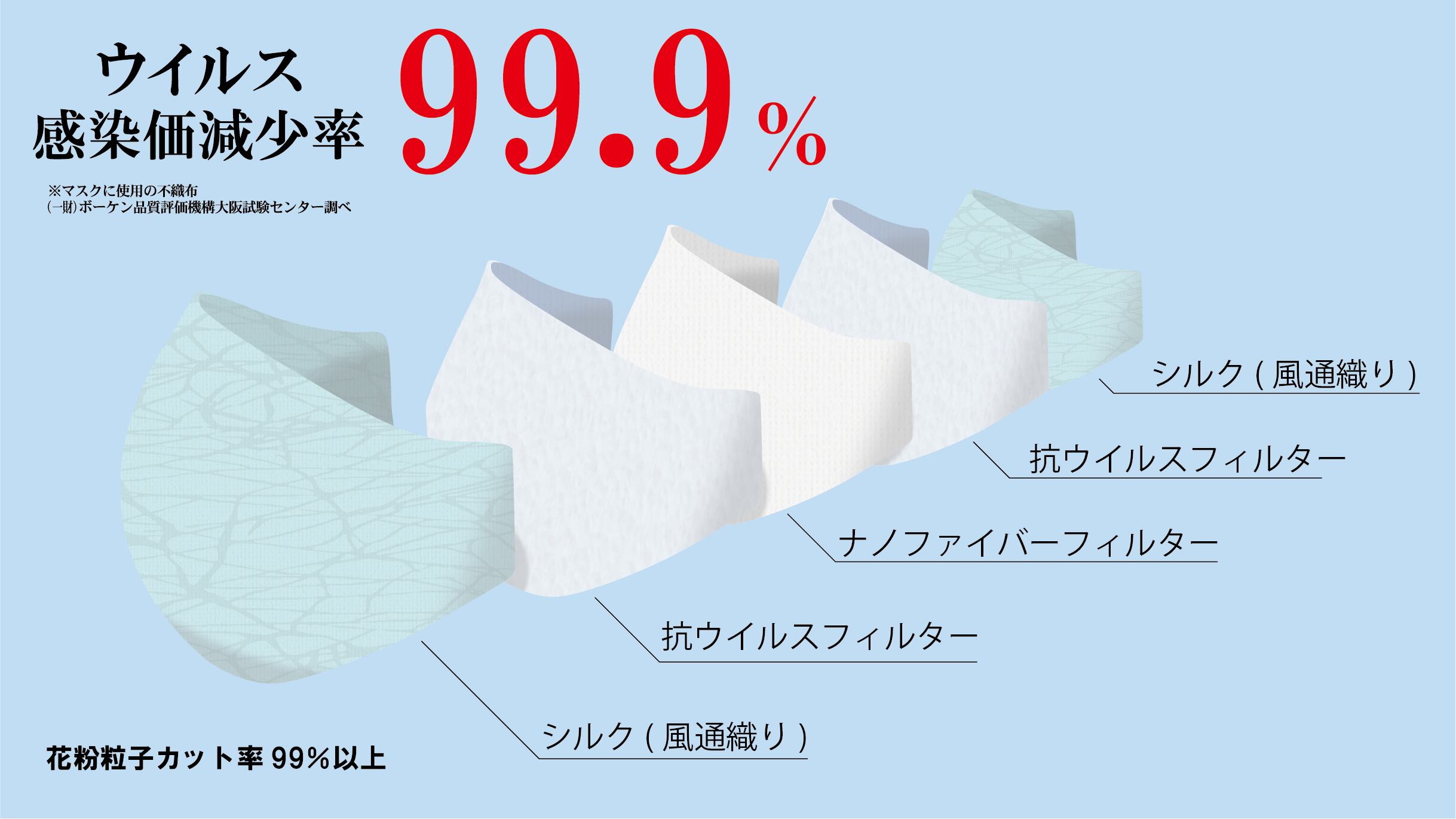 N95級のウィルス捕集率のフイルターを備えたナノ×シルクマスクで ウイルスにしっかり備えて、しっかりとしたウイルス対策が大切です。